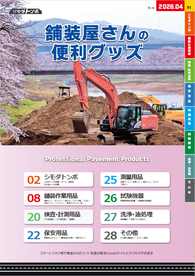 TOP カタログ、サンプル ア行アイデア・サポート 新着商品 便利な道具が満載。シモダトンボ・ネットショップの総合パンフレット最新号です。シモダトンボをはじめとした、現場で役立つ便利な道具が満載です。(A4版全28ページ)※無料でお届けいたしますのでお気軽にご注文ください。 総合パンフレット「舗装屋さんの便利グッズ」2026年4月号 【無料】【ネコポス便】 価格: ¥0 (税抜 ¥0) 販売期間: メーカー: アイデア・サポート 数量: 冊 在庫 在庫あり 返品についての詳細はこちら 商品仕様 メーカー: アイデア・サポート 仕様 サイズ A4 ページ数 28ページ ※ネコポス便での発送になります。