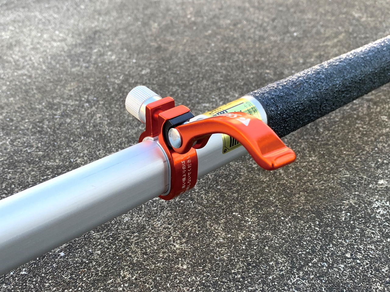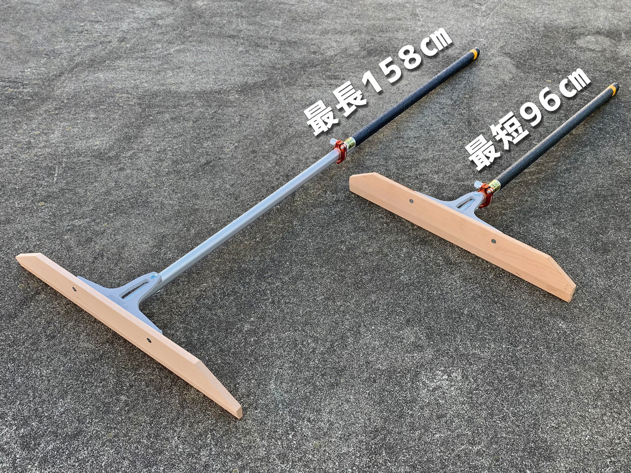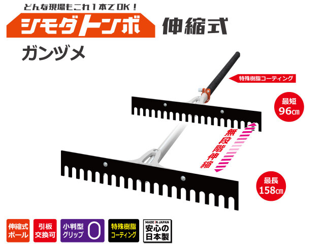 シモダトンボ伸縮式は手元のレバー操作で、最短96cmから最長158cmまで自由に長さを調節可能。